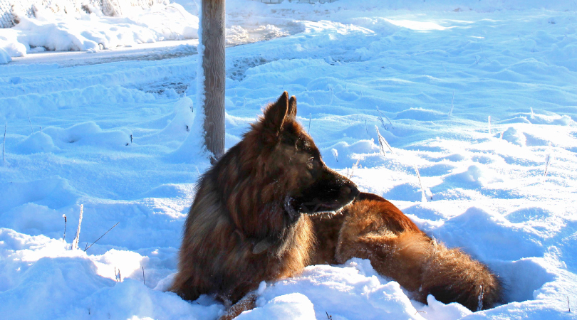 Między ośnieżonymi modrzewiami zamajaczy stajnia rekreacyjna.